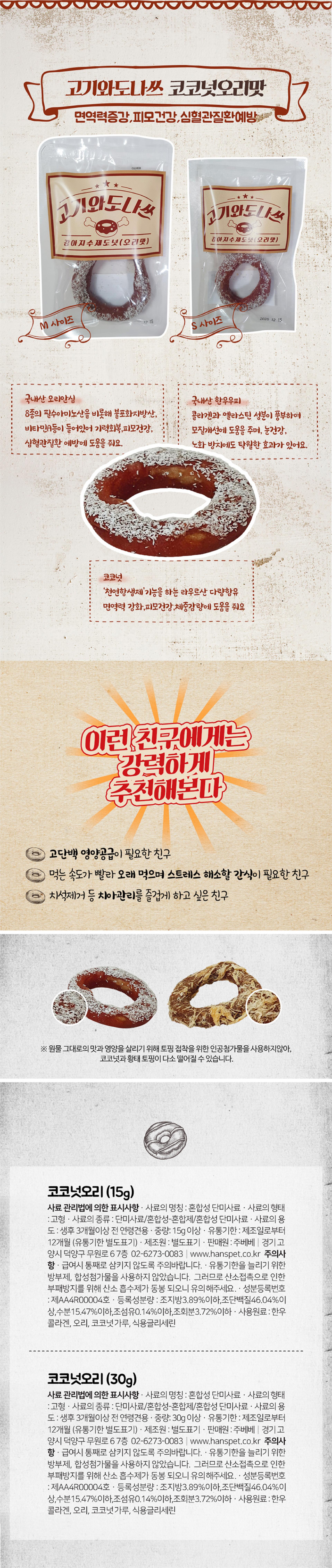 [사업자전용] 주베베 고기도나쓰(오리코코넛) S사이즈